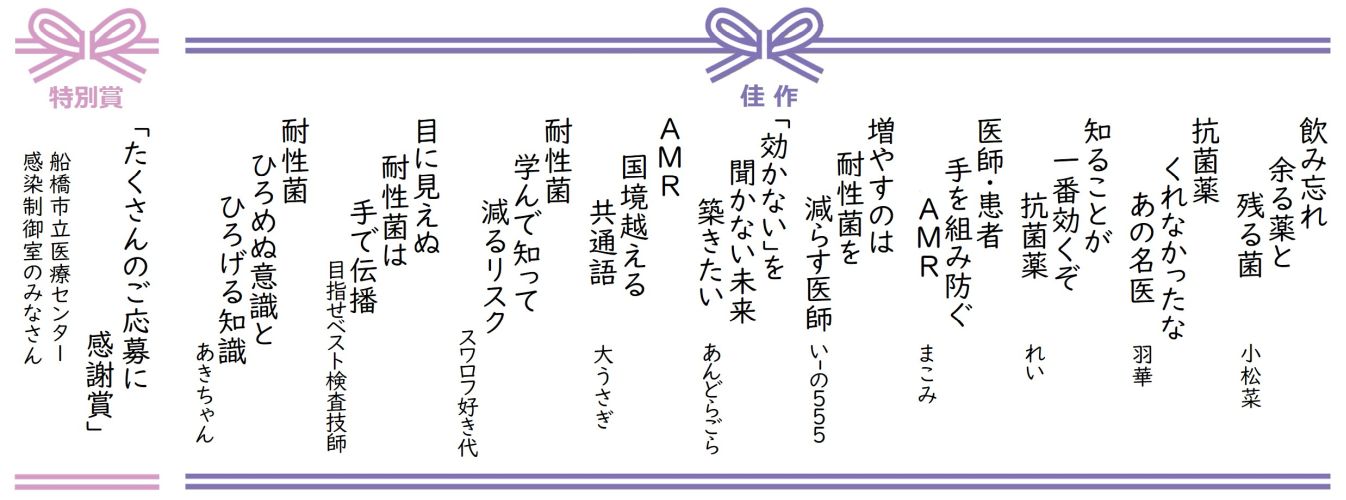 今回ご応募いただいた川柳作品は、さまざまな形で活用させていただき、今後も薬剤耐性対策を進めてまいります。
